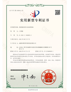 低耗能農村污水處理設備-證書